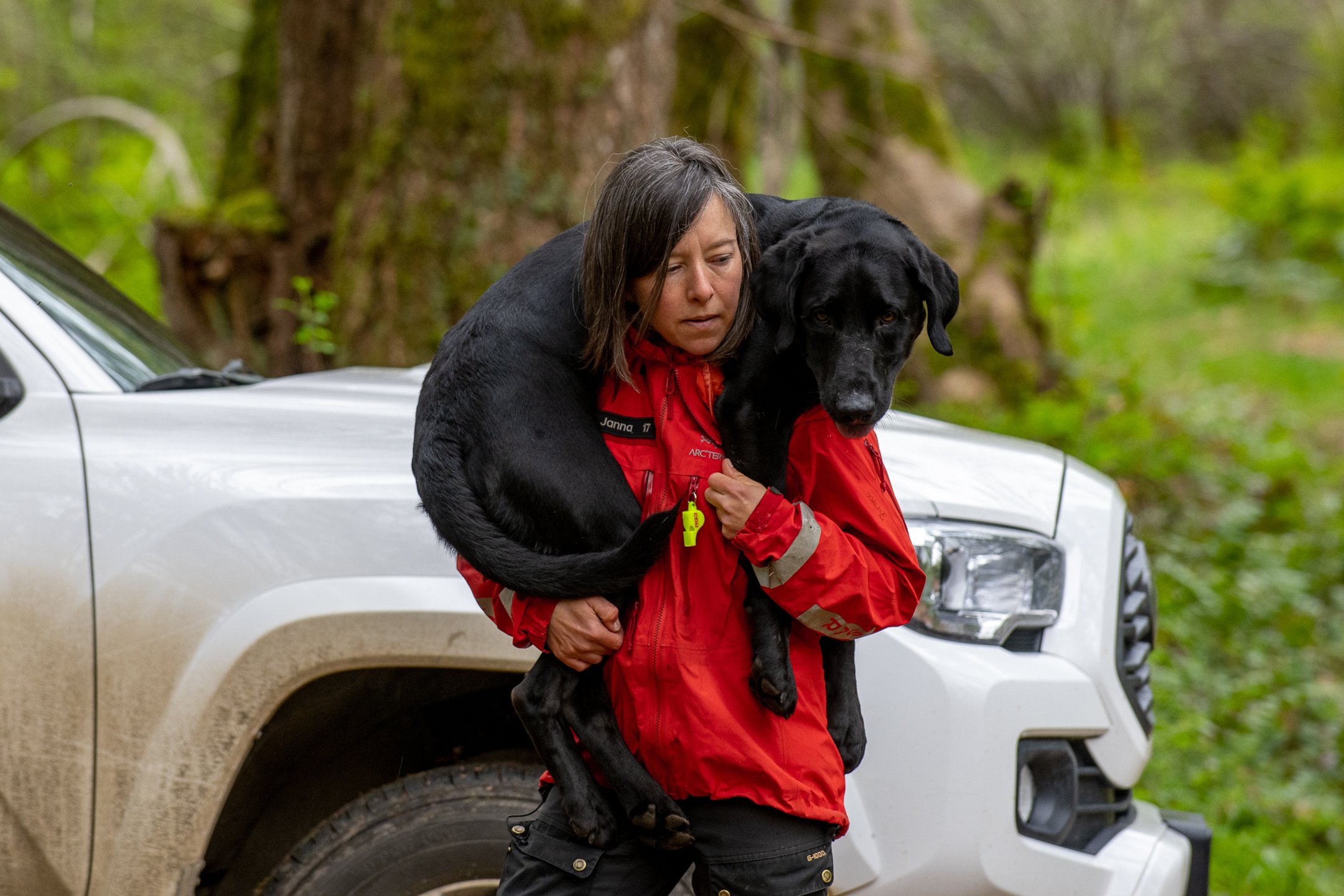 We carry a cell phone, Zoleo, first aid kit, Fido Pro, and extra leashes plus bear spray and bells. During hunting season we wear some blaze orange. My first aid skills are regularly maintained. Dogs are leashed until safely away from roads and trail heads, around other trail users, livestock or wildlife. We carry emergency contact and vet information with us. Dogs are crated or tethered during travel. Dogs are vetted for social compatibility and required to be current on routine vaccines, tick and flea prevention.